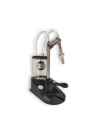 Single-spout stainless steel filler, food-grade plastic recovery tank. Fills up to 250 bottles per hour, in perfect hygiene conditions and without spilling liquids. The filling level is adjustable; once set, it fills each bottle to the desired level.