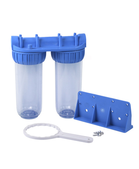Inlet thread: 1 ” Working pressure: 9 Bar Size: 10 ” Color: transparentIndoor installation Includes: 2 empty filter + support + screws + wrenchUsed with cartridges refª 210, 300, 310, 410, 450, 610 e 460