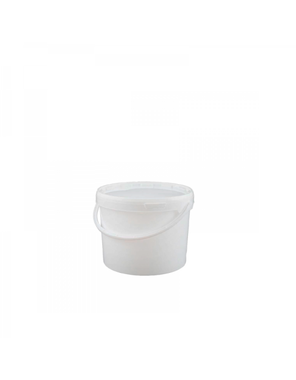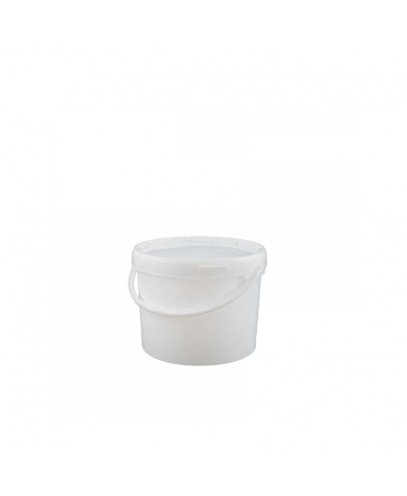 2 liters food bucket, ideal for storing and transporting food. Perfect for home and professional use. White plastic bucket with lid. Volume to Rim: 2,40 Lts. Food Quality.