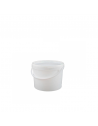 0.5 liter food bucket, ideal for storing and transporting food. Perfect for home and professional use. White plastic bucket with lid. Ø 115 mm. Height: 82 mm. Food Quality.