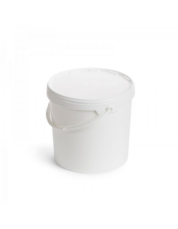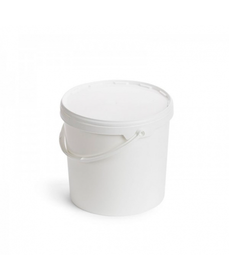 White plastic bucket with lid. Nominal capacity: 10 000 ml Total capacity: 11 650 ml. Total usable capacity: 11 100 ml. Polypropylene(PP). Food quality.