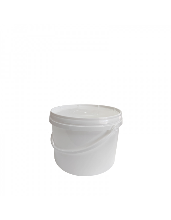 1 liter food bucket, ideal for storing and transporting food. Perfect for home and professional use. White plastic bucket with lid. Ø 131 mm. Height: 119 mm. Food Quality.