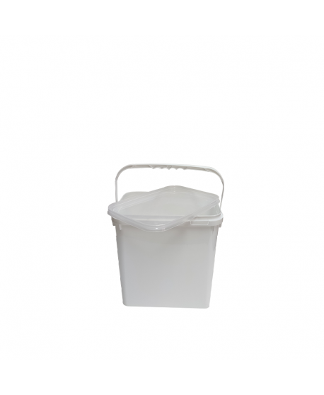 Balde plástico 5 litros branco, ideal para armazenar e transportar alimentos.